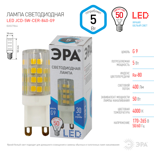 Освещение > Лампы светодиодные ЭРА STANDART > Капсульные (G4, G9) STD