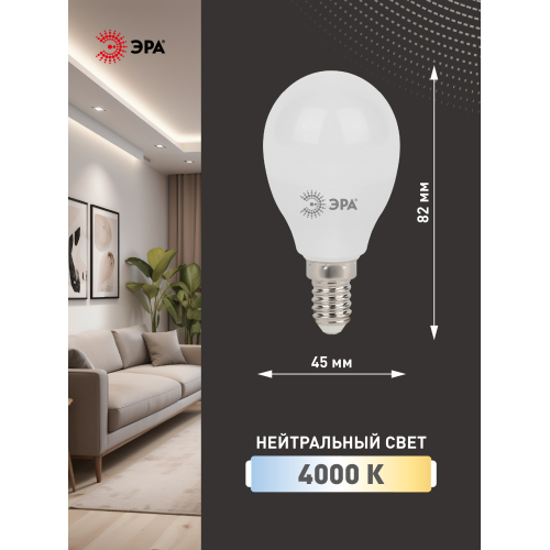 Эта светодиодная лампа ЭРА Серии Стандарт - современный, качественный и доступный источник света. Позволяет экономить до 90% электроэнергии по сравнению с лампой накаливания с аналогичным световым потоком. Светит ярким белым светом, который максимально приближен к естественному дневному. Идеальна для ежедневного применения в быту. Мгновенное включение. Ровное освещение. Можно использовать как с люстрами, так и со светильниками, в том числе настольными и бра.