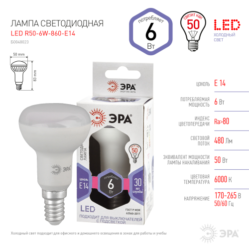 LED R50-6W-860-E14
