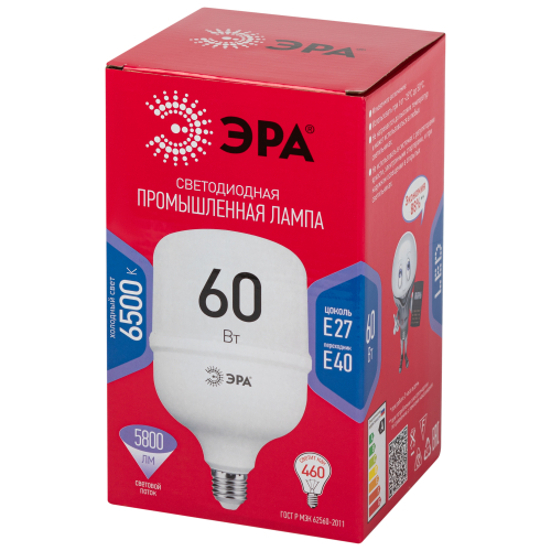 Светодиодная лампа повышенной мощности ЭРА RED LINE LED POWER T120-60W-6500-E27/E40 R идеальна для качественного и экономичного освещения пространств с большой площадью производственных, торговых, выставочных, складских, подсобных помещений. Светит ярко, как лампа накаливания 460 Вт, при этом потребляет мощность всего 60 Вт. Экономит до 90% электроэнергии. Светит холодным белым светом, который способствует концентрации внимания и повышает работоспособность. Не нагревается, включается мгновенно, не мигает. Размеры: 198 х 117 мм. Цоколь Е27/E40
