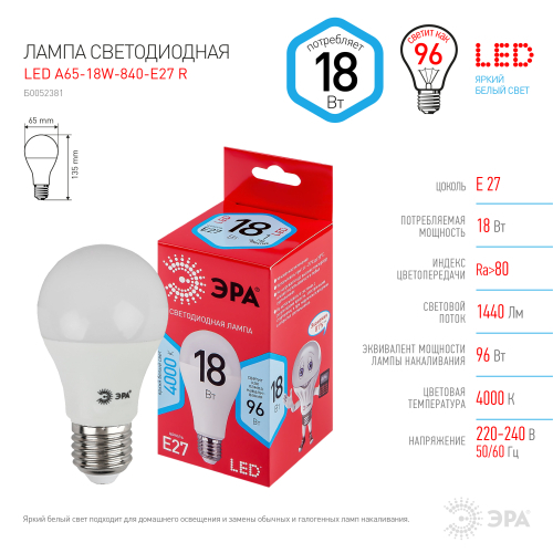 Освещение > Лампы светодиодные ЭРА RED LINE > Груша (A) RED