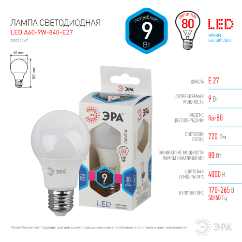 Эта светодиодная лампа ЭРА Серии Стандарт - современный, качественный и доступный источник света. Позволяет экономить до 90% электроэнергии по сравнению с лампой накаливания с аналогичным световым потоком. Светит ярким белым светом, который максимально приближен к естественному дневному. Идеальна для ежедневного применения в быту. Мгновенное включение. Ровное освещение. Можно использовать как с люстрами, так и со светильниками, в том числе настольными и бра.