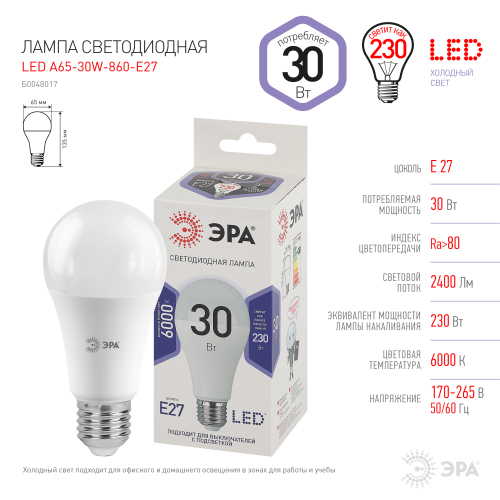 Экономичная светодиодная лампа ЭРА Серии Стандарт с отличными характеристиками для установки в люстры и все типы бытовых светильников - потолочные, настольные, бра. Бережёт электроэнергию, ярко светит, имеет долгий срок службы. Цветовая температура - холодный белый свет. Такое освещение бодрит, повышает работоспособность. Этот современный источник света создаёт комфортное и безопасное для глаз освещение.