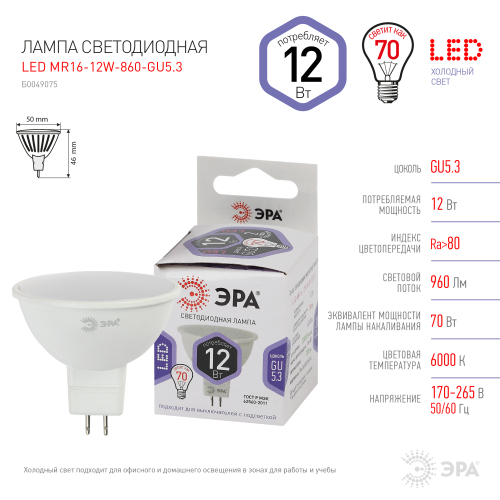 Освещение > Лампы светодиодные ЭРА STANDART > Софиты (MR) STD