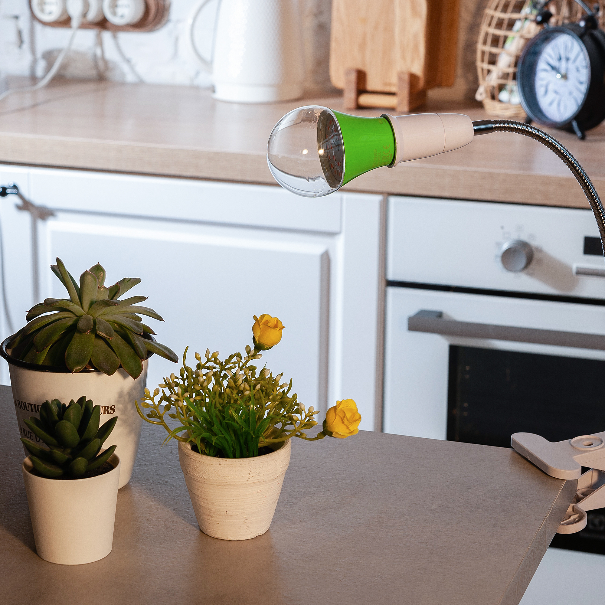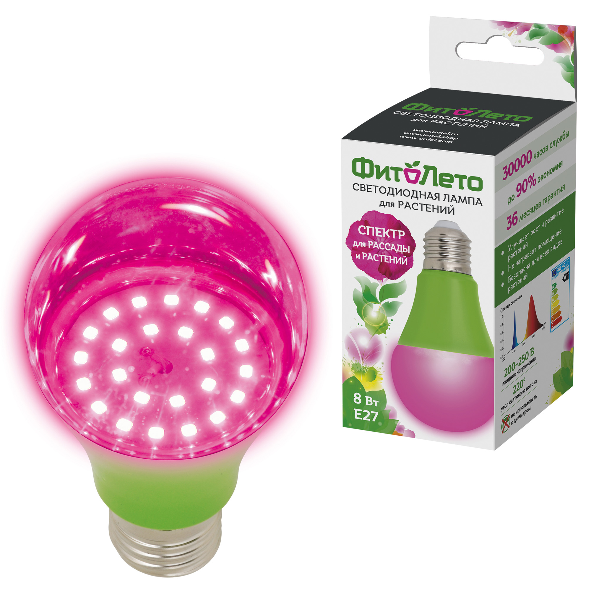 Новинка от Uniel светодиодная фитолампа LED-A60-8W/SPSB/E27/CL PLP30GR, бюджетный вариант для начинающих и опытных садоводов. Несмотря на небольшую мощность 8 Вт, фитолампа отлично справляется со своей задачей. Специальный спектр SPSB благотворно влияет на развитие рассады и оказывает значительную поддержку растениям в процессе черенкования. Также данный спектр станет незаменимым помощником в период цветения. Светодиодная лампа имеет симпатичный и яркий дизайн, долгий срок службы - 30000 часов и гарантию 36 месяцев. Стандартный цоколь Е27 - подходит к патронам большинства светильников. Практически не нагревает воздух и растения, безопасна для детей и животных.