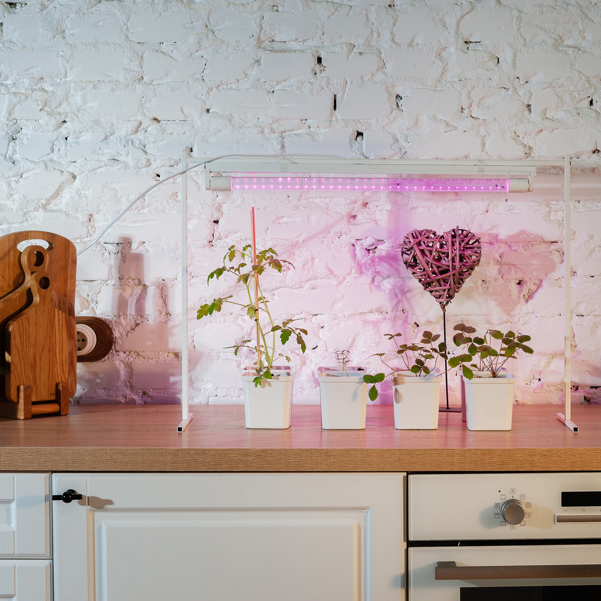 Фитолампа хорошо освещает площадь вокруг себя благодаря углу светового потока 330º. Длина изделия – 0,6м, что позволяет разместить фитолампу даже в небольшом пространстве: на подвесах над или между растениями.
