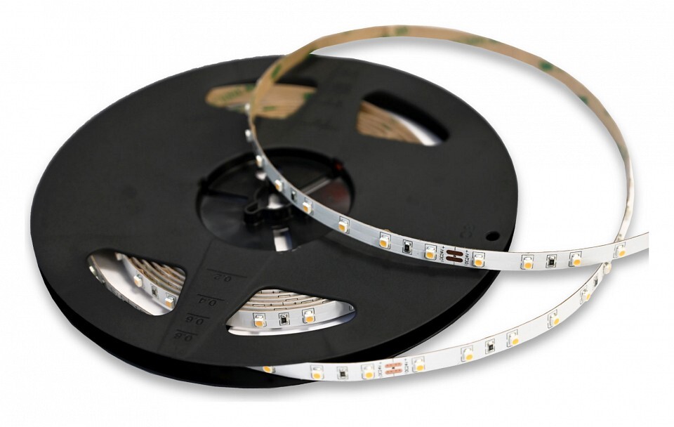 гибкая светодиодная лента 5 м :, клейкое основание с защитной пленкой, тип светодиодов SMD2835, размер светодиодов 2.8х3.5 мм, кратность резки: 50 мм, мощность 1 светодиода 0.08 Вт, шаг 60 светодиодов/метрпри выборе блока питания следует учитывать общую мощность ленты или нескольких лент, соединенных вместе, с добавлением 10-20 % запаса по мощности