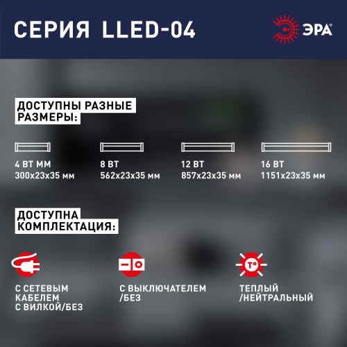 Линейный светодиодный светильник LLED-04 c контактом подключения 3-pin без выключателя. В комплекте: светильник, сетевой шнур 15см без вилки, твердый коннектор, крепеж для монтажа на вертикальную или горизонтальную поверхность. Максимально допустимая мощность подключения в линию: 100 Вт.
