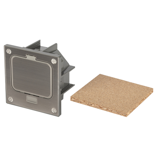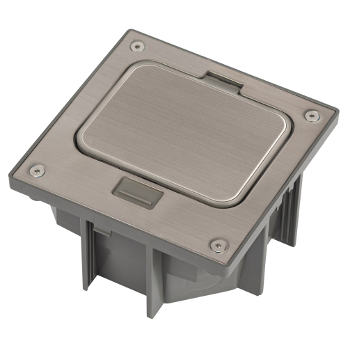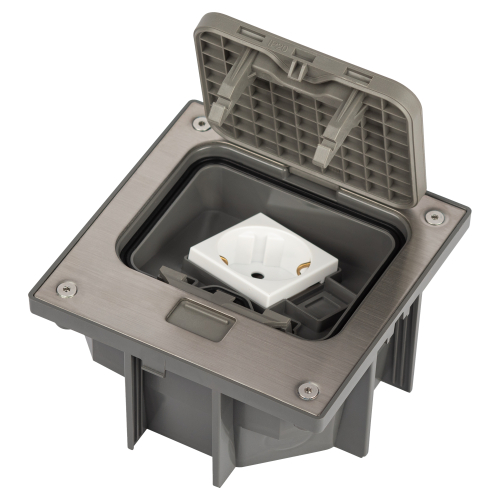 Люк в бетон серии ЭРА ОФИС с розеткой 2Р+Е со шторками, защёлка, цвет серый 18-6001-13. IP66. Крышка изготовлена из нержавеющей стали. Монтажная коробка в комплекте. Изделие предназначено для офисных помещений, и помещений с высокими механическими нагрузками на пол