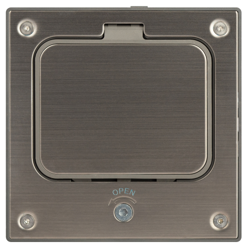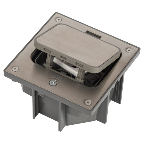 Люк в бетон серии ЭРА ОФИС с розеткой 2Р+Е со шторками, под шестигранник, цвет серый 18-6002-03. IP66. Крышка изготовлена из нержавеющей стали. Монтажная коробка в комплекте. Изделие предназначено для офисных помещений, и помещений с высокими механическими нагрузками на пол.