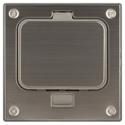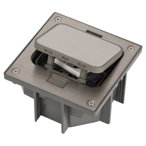 Люк в бетон серии ЭРА ОФИС с розеткой 2Р+Е со шторками, защёлка, цвет серый 18-6001-13. IP66. Крышка изготовлена из нержавеющей стали. Монтажная коробка в комплекте. Изделие предназначено для офисных помещений, и помещений с высокими механическими нагрузками на пол