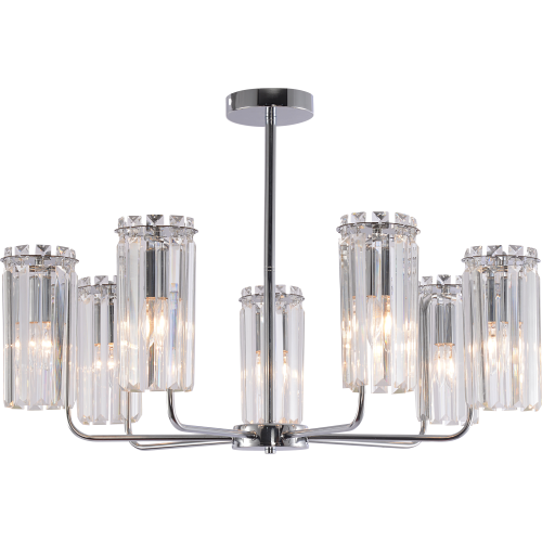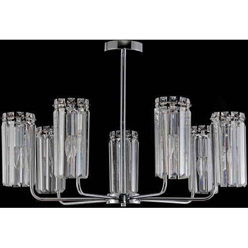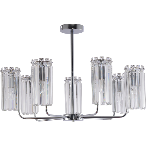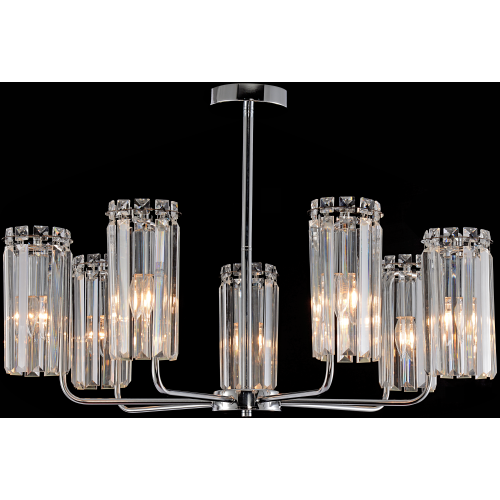 Коллекция светильников в цвете хром включает люстры на 5 и 7 рожков с цоколем E14 и бра с встроенным выключателем. Максимальная мощность лампы 40Вт (в комплект не входит). Плафоны из кристаллов создают утонченную атмосферу в интерьере.