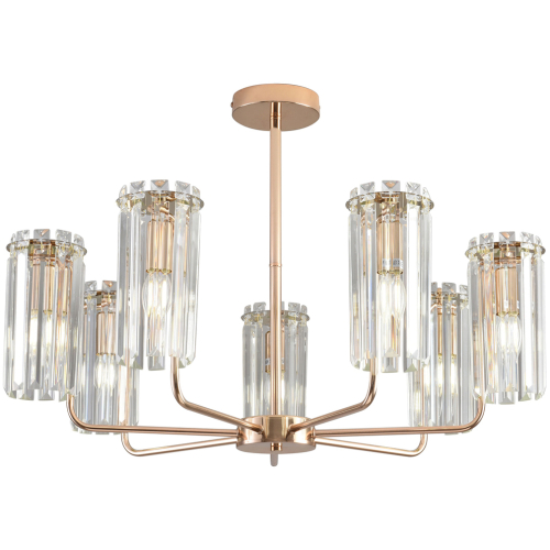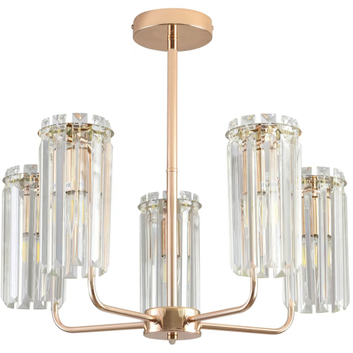 Серия золотых светильников включает люстры на 5 и 7 рожков с цоколем E14 и бра с встроенным выключателем. Максимальная мощность лампы 40Вт (в комплект не входит). Плафоны из кристаллов добавляют элегантности в атмосферу интерьера.