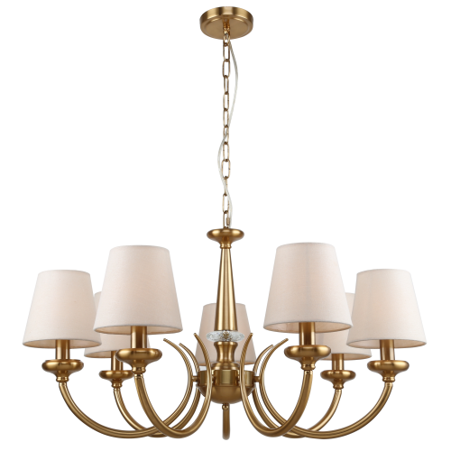 Rivoli (арт. 2073-307) 7-рожковая классическая люстра для освещения больших пространств. Люстры со светлыми тканевыми абажурами создают мягкое уютное освещение. Если вам нужно купить люстры потолочные с комфортным для глаз светом, вы на правильном пути. Посмотрите фото всей коллекции от итальянского бренда Rivoli: арт. 2073-305 – люстры подвесные под 5 ламп, арт. 2073-401 – настенное бра в классическом стиле.