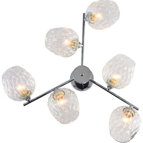 Люстры потолочные Rivoli (арт. 3139-306) - это сочетание трендовой хромированной арматуры и прозрачного дизайнерского стекла. Люстры в гостиную с 6 узорчатыми стеклянными плафонами великолепно пропускают свет, освещая площадь 18 м2. Арматура люстры отличается лаконичностью форм. Стойкое гальваническое покрытие люстры модного оттенка хром делает Rivoli удачным заказом для современных интерьеров и хорошим вариантом люстры на кухню. Такие люстры прослужат долго, радуя своей красотой и отлично дополняя пространство практически любого стиля.