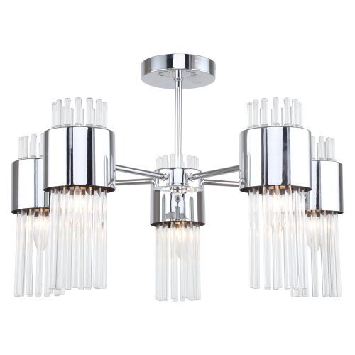 5-рожковая люстра на штанге в цвете хром, с трубчатыми стеклянными плафонами. Люстра потолочная применяется с 5 лампами Е14 мощностью 40 Вт, освещает площадь до 15 м2. Люстра с цилиндрическими плафонами из стекла будет удачно смотреться в гостиной, в спальне, на кухне, в кабинете, в загородном доме. Люстры и светильники коллекции Rivoli подходят для оформления пространств сегмента horeca – рестораны, кафе, гостиницы. Эти люстры потолочные заказывают в интерьеры театров, концертных залов, фойе общественных пространств. В коллекции Rivoli : люстра под 5 ламп - арт. 3148-305, люстра под 7 ламп - арт. 3148-307, светильник подвесной - арт. 3148-201, светильник настенный - арт. 3148-401.