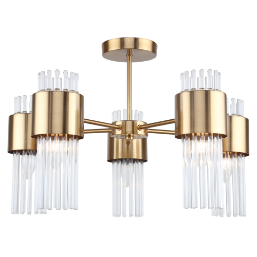 5-рожковая люстра на штанге в цвете французское золото, с трубчатыми стеклянными плафонами. Люстра потолочная применяется с 5 лампами Е14 мощностью 40 Вт, освещает площадь до 15 м2. Люстра с цилиндрическими плафонами из стекла будет удачно смотреться в гостиной, в спальне, на кухне, в кабинете, в загородном доме. Люстры и светильники коллекции Rivoli подходят для оформления пространств сегмента horeca – рестораны, кафе, гостиницы. Эти люстры потолочные заказывают в интерьеры театров, концертных залов, фойе общественных пространств.