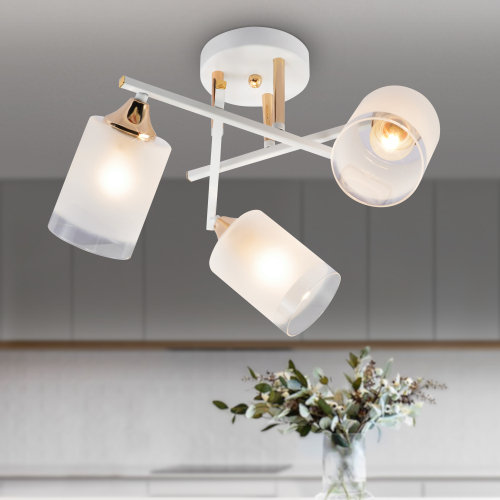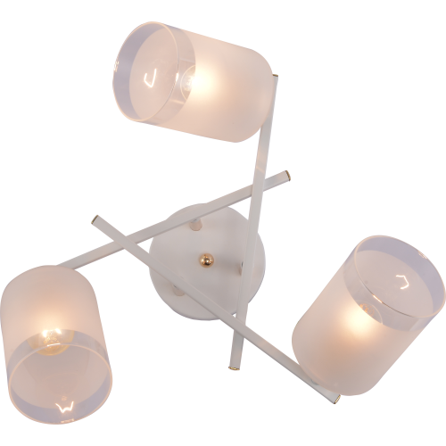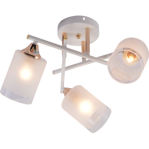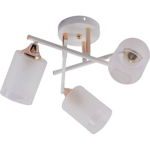 Люстра Rivoli (арт. 3162-303) в белом цвете с декоративными элементами золотого цвета. Стиль люстры – модерн. Количество плафонов – 3. Люстра потолочная применяется с лампами Е27 60 Вт. Плафоны из белого матового стекла расположены на лаконичных рожках в виде перекрёстных металлических реек. По краю плафоны люстры декорированы прозрачной полосой. Корпус дизайнерской люстры изготовлен из лёгкого прочного металла. Основание круглое, люстра быстро монтируется накладным способом на любой потолок. Люстра на эффектных коротких штангах подходит для невысоких потолков. Дизайн люстры создавался так, чтобы эта модель была универсальна для любого интерьера.
