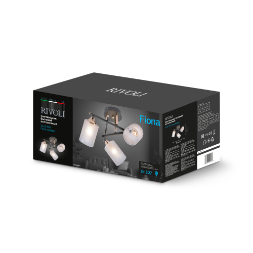 Плафоны люстры изготовлены из матового стекла. Люстра потолочная Rivoli создаёт мягкий ровный свет, комфортный для глаз. Люстра 3-рожковая освещает площадь до 9 м2. Люстра на потолок применяется с лампочками Е27 60 Вт. Плафоны люстры в количестве 3 шт имеют декоративный ободок из прозрачного стекла, что придаёт люстре интересный вид.