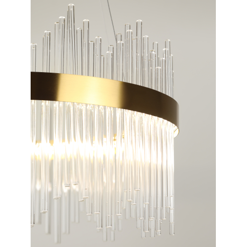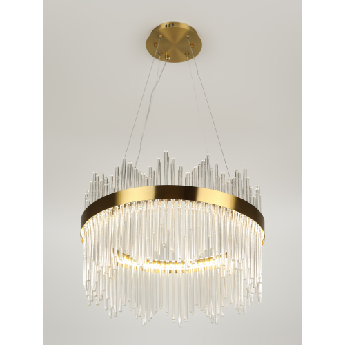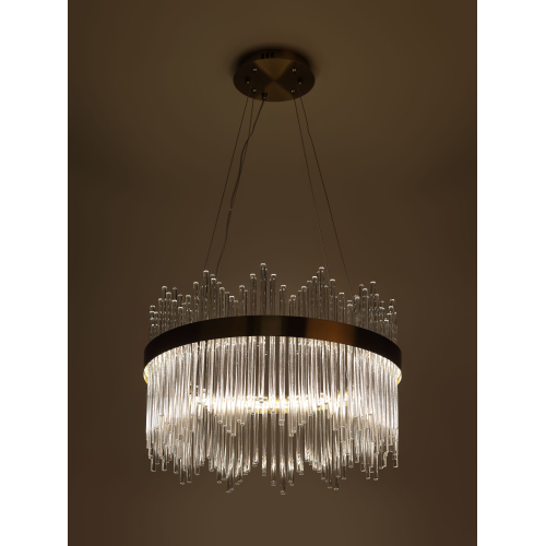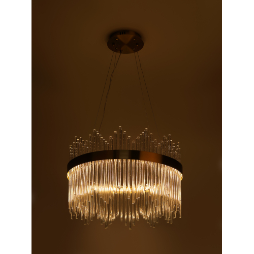 Подвесная светодиодная люстра круглой формы в медном цвете — стильный и современный акцент для вашего интерьера. Мощность 112 Вт, регулируемая температура света от 3000 до 6300K, позволяет создать комфортное освещение под любые нужды. В комплекте пульт для удобного управления, а регулируемая высота даёт возможность легко адаптировать светильник к пространству.