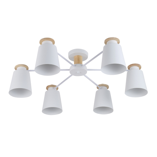 Rivoli (арт. 9112-306) - красивая люстра на потолок с белой арматурой и 6 белыми металлическими плафонами. Декорирована элементами светлого дерева. Дизайн люстры создан в Италии. Люстра в гостиную идеальна для интерьеров в скандинавском стиле, в стиле модерн, лофт, кантри. Плафоны отлично направляют свет вниз - такую люстру можно с успехом разместить на кухне, чтобы стол и рабочие поверхности были хорошо освещены.