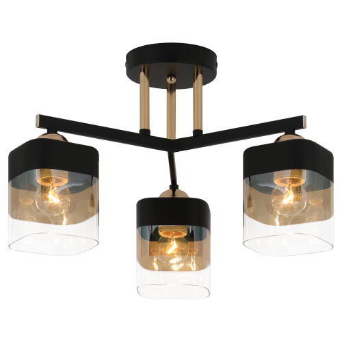 Люстра в гостиную (арт. 9133-303) выполнена из металла и стекла. Люстры потолочные итальянского бренда Rivoli прекрасно дополняют современный или классический интерьер. Данная люстра хорошо подходит на низкий потолок или потолок средней высоты. Дизайн люстры на кухню Rivoli соответствует стилю модерн - одна из самых популярных тенденций. Небольшая по габаритам люстра (440*440*270 мм) подойдёт в спальню или в прихожую. Лаконичный корпус этой люстры имеет стойкое окрашивание в стильном сочетании чёрного и золотого цветов. Прямоугольные плафоны люстры затонированы и смягчают световой поток. Стеклянные плафоны - классическое решение, выглядят красиво и элегантно. Подходят лампы распространенного цоколя Е27, мощность - 40 Вт.