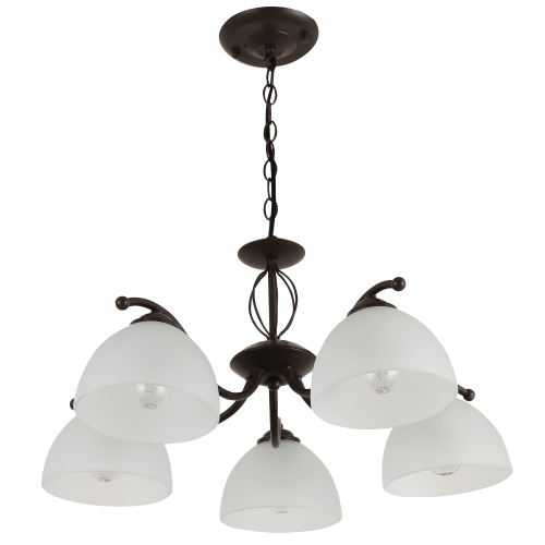 Rivoli (арт. 9141-305) - люстры подвесные с 5 матовыми плафонами из закаленного стекла. Классическая арматура люстры выполнена из металла со стойким окрашиванием красивого кофейного цвета. Матовое стекло плафонов люстры смягчает блики. Свет люстры в гостиную Rivoli направлен вниз, что позволяет отлично освещать поверхности. В комнате, где в качестве основного освещения применены люстры потолочные от итальянского бренда Rivoli, светло и уютно. В комплект к люстре можно купить настольный светильник (арт. 7141-501) и бра (арт. 9141-401), это поможет сделать интерьер завершенным. Для пространств меньшей площади стоит заказать люстру Rivoli под 3 лампы (арт. 9141-303).