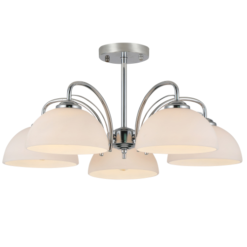 Потолочная люстра на штанге в хромированном металлическом корпусе - Rivoli (арт. 9173-305). Люстра на потолок имеет 5 стеклянных матовых плафонов, в которые необходимо вкрутить лампы Е27 40 Вт. Плафоны этой универсальной современной люстры имеют форму широкого колокольчика, дают много света. Освещаемая площадь 5-рожковой люстры итальянского бренда Rivoli – до 15 м2. Коллекцию дополняет модель с освещаемой площадью до 9 м2 – люстра потолочная на штанге с 3 плафонами (арт. 9173-303). А также бра настенное – арт. 9173-401. Хромированные люстры с белыми плафонами – популярное решение для организации основного освещения в жилой комнате.