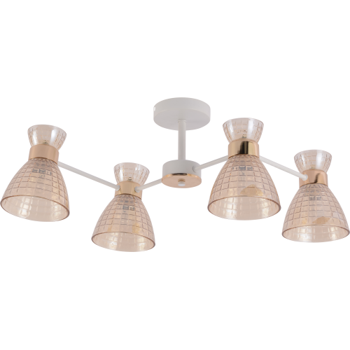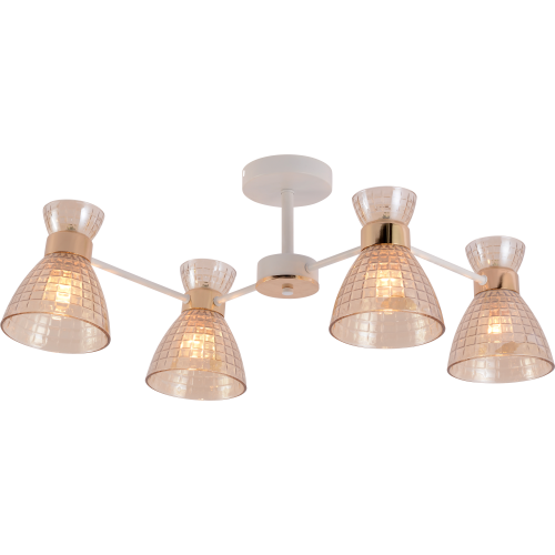 Серия светильников в сочетании белого и золота с тонированными плафонами — изящное и современное решение для вашего интерьера. В коллекции люстры на 4 и 6 ламп, а также бра с удобным выключателем-цепочкой. Подходят лампы с цоколем E27, мощностью до 60 Вт (лампы в комплект не входят).