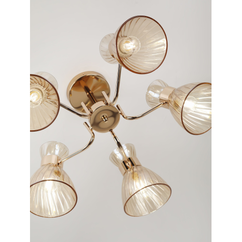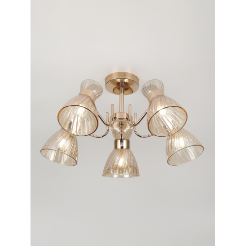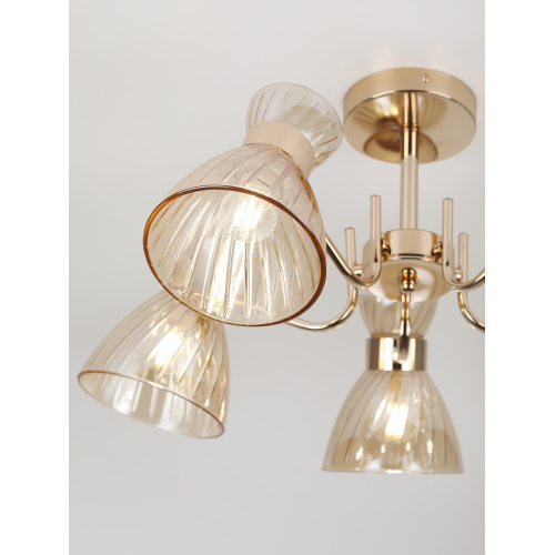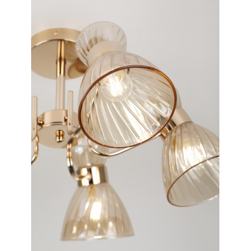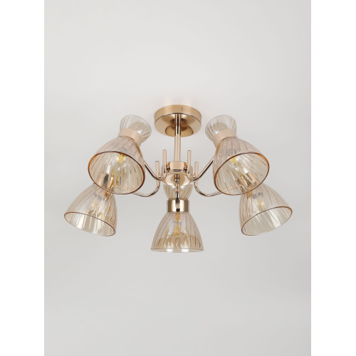 Серия золотых светильников с тонированными плафонами — стильное и универсальное решение для современного интерьера. В коллекции представлены люстры на 3 и 5 ламп, а также бра с удобным выключателем-цепочкой. Подходят лампы с цоколем E27, мощностью до 60 Вт (лампы в комплект не входят).