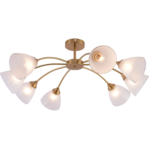 Коллекция светильников медного цвета включает люстры на 6 и 8 рожков с цоколем E27 и бра с встроенным выключателем. Максимальная мощность лампы 60Вт (в комплект не входит). Стильный и функциональный выбор для любого интерьера.