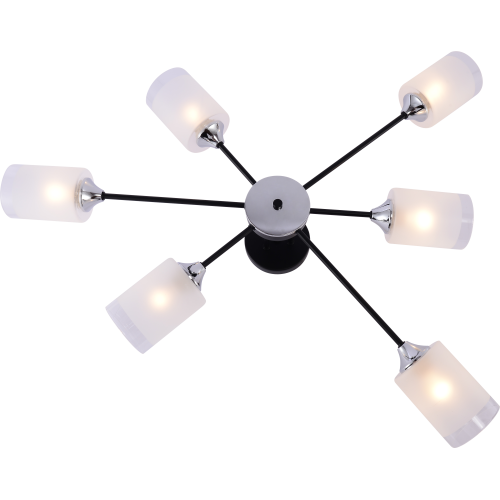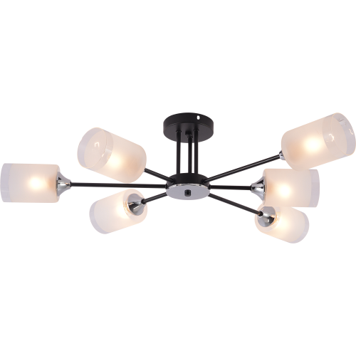 Серия черных потолочных люстр на 6 и 8 рожков с цоколем E27 (макс. 60Вт) — элегантный и современный выбор для вашего интерьера. Дизайн в виде рожков разной длины создает эффектное освещение и стильную атмосферу