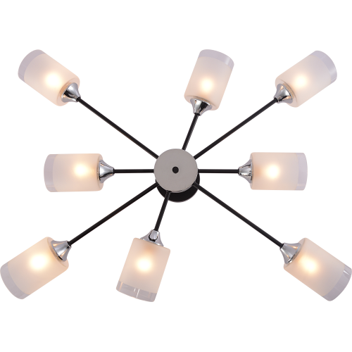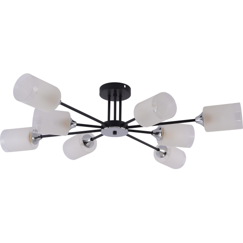 Серия черных потолочных люстр на 6 и 8 рожков с цоколем E27 (макс. 60Вт) — элегантный и современный выбор для вашего интерьера. Дизайн в виде рожков разной длины создает эффектное освещение и стильную атмосферу.