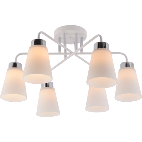 Коллекция белых светильников включает люстры на 6 и 8 рожков с цоколем E27 и бра с встроенным выключателем. Максимальная мощность лампы 60Вт (в комплект не входит). Стильный и современный выбор для любого интерьера.