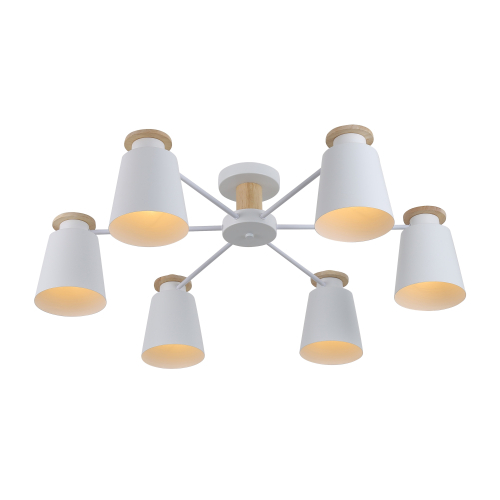 Rivoli Adna (арт. 9112-306) - красивая люстра на потолок с белой арматурой и 6 белыми металлическими плафонами. Декорирована элементами светлого дерева. Дизайн люстры создан в Италии. Люстра в гостиную Adna идеальна для интерьеров в скандинавском стиле, в стиле модерн, лофт, кантри. Плафоны отлично направляют свет вниз - такую люстру можно с успехом разместить на кухне, чтобы стол и рабочие поверхности были хорошо освещены.