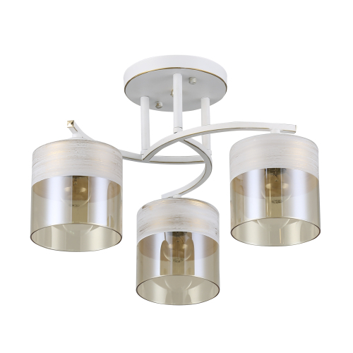 Rivoli Constancia (арт. 9081-303) - светлая дизайнерская люстра на потолок из металла и стекла. Бело-золотой корпус люстры окрашен в технике декоративного состаривания - удачное решение для создания стиля прованс и в целом уюта в доме. Плафоны с теплым золотистым тонированием имеют белый ободок в верхней части. Количество плафонов - 3. Они мягко рассеивают свет и качественно освещают площадь 9 м². Арматура люстры аккуратная, с плавными линиями. Люстры потолочные Constancia от итальянского бренда Rivoli формируют в доме спокойное умиротворенное настроение.