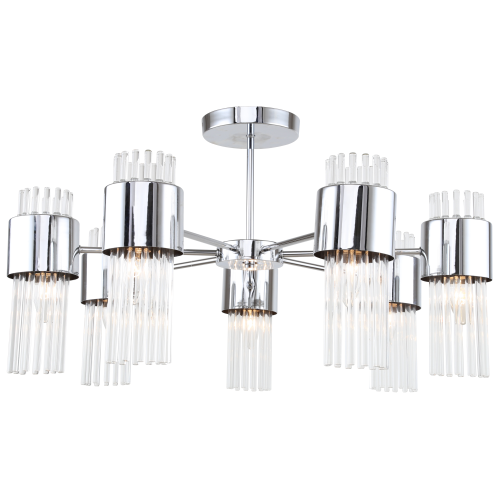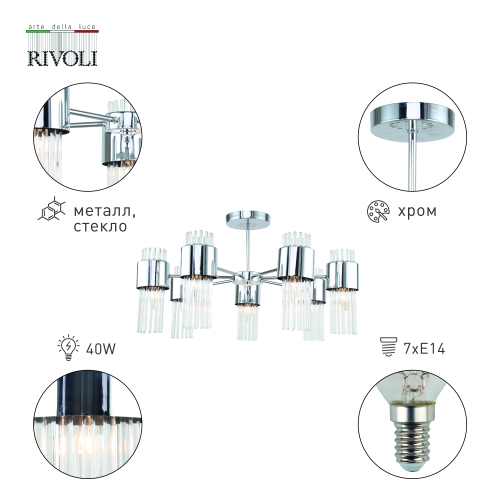 Люстра потолочная на металлической штанге Rivoli Deborah (арт. 3148-307) – современная люстра в стиле модерн для оформления трендовых интерьеров. Плафоны люстры состоят из прозрачных стеклянных трубочек, прекрасно пропускающих свет. Форма плафонов люстры – цилиндр, количество плафонов – 7. Металлический корпус люстры окрашен гальваническим способом в модный цвет хром, который прекрасно смотрится в современных квартирах. Освещаемая площадь данной люстры в гостиную – до 21 м2.