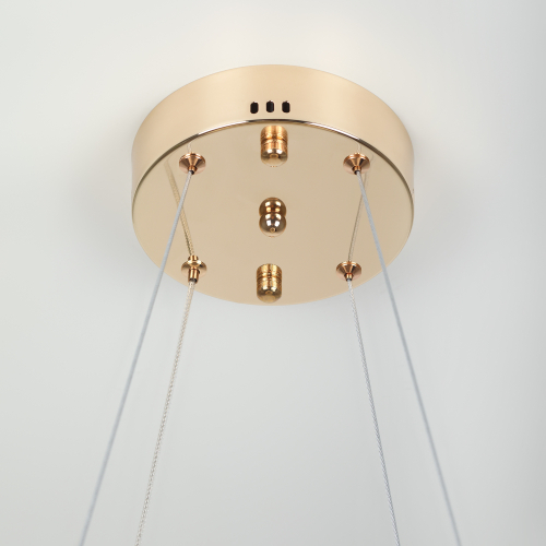 Светодиодная люстра LED Rivoli Diane (арт. 6133-101) мощностью 45 Вт отличается оригинальным оформлением, созданным европейскими дизайнерами. Кольцевой плафон-абажур люстры со встроенными светодиодами декорирован прозрачными подвесками с филигранно выполненным рисунком по стеклу. Люстру отличает прочная металлическая конструкция, окрашивание арматуры выполнено в актуальный золотой оттенок.