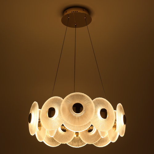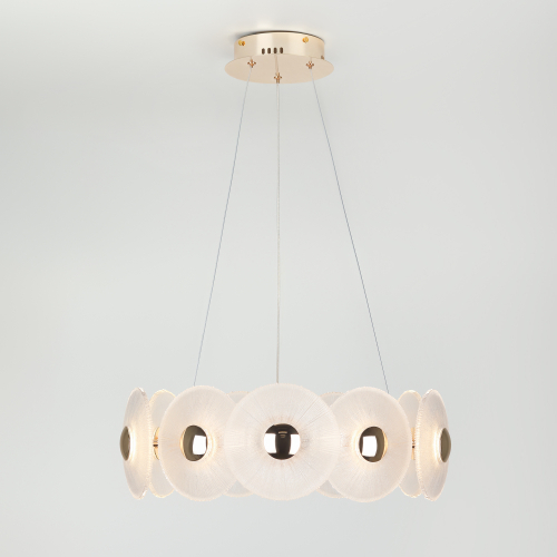 Данная модель коллекции — подвесная LED-люстра мощностью 30 Вт. Диаметр кольцевого металлического абажура люстры — 540 мм. Световой поток — 2250 Лм. Это яркая большая люстра для просторных комнат и общественных пространств.