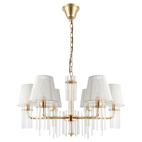 Rivoli Lilith - большая подвесная люстра в стиле современная классика. Итальянская коллекция Lilith Rivoli, в которую входят люстры потолочные под 6 и 8 ламп (арт. 1039-306, 1039-308) и настенное бра (арт. 1039-401), изготовлена из высококачественного легкого металла и декорирована удлиненными стеклянными колбами.