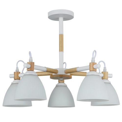 Стеклянные матовые плафоны люстры Louise Rivoli мягко рассеивают свет. Металлический корпус современной люстры окрашен гальваническим способом в белый цвет. Присутствуют детали из светлого дерева. В декоративных целях выпущены провода плафонов люстры.
