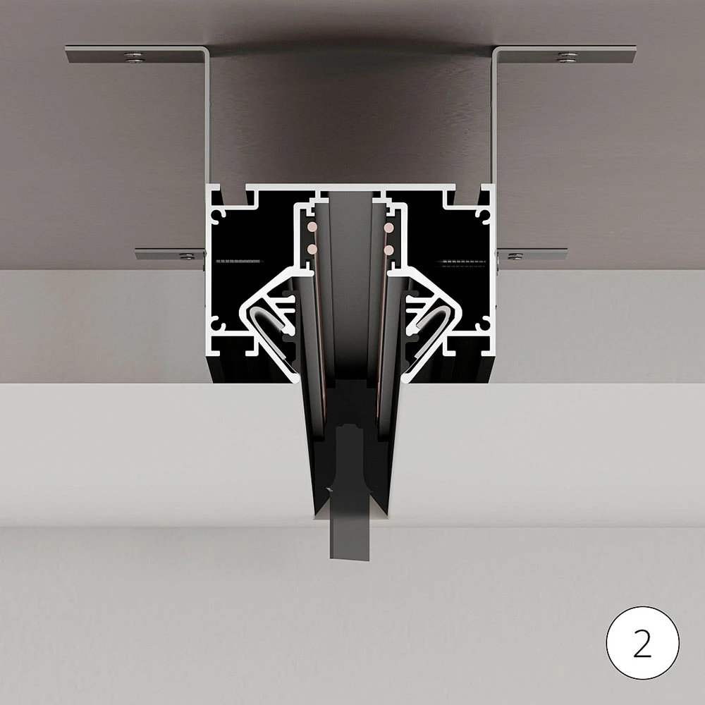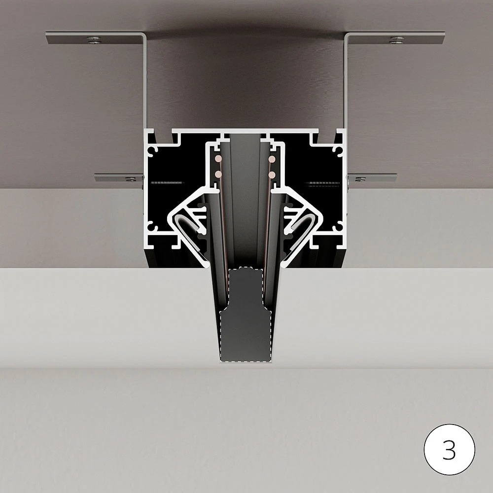 Коллекция LINEA-ACCESSORIES и модель A474306 итальянского производителя Arte Lamp в стиле техно. Устанавливается в натяжной потолок. Предназначен для установки магнитных трековых светильников. Магнитный шинопровод Arte Lamp LINEA-ACCESSORIES обладает габаритами 4.6 см по высоте, 300 см длиной, 23.5 см шириной. В комплекте идут 2 внутренние декоративные вставки, которые закрывают паз крепления натяжного полотна, для придания законченного вида конструкции. Если фигура построения не замкнутая, дополнительно необходимо приобрести торцевые заглушки A483206E и внутренние заглушки А485206E, которые устанавливается непосредственно в шинопровод, закрывая торцевое крепление полотна. Арматура черного цвета выполнена из алюминия.