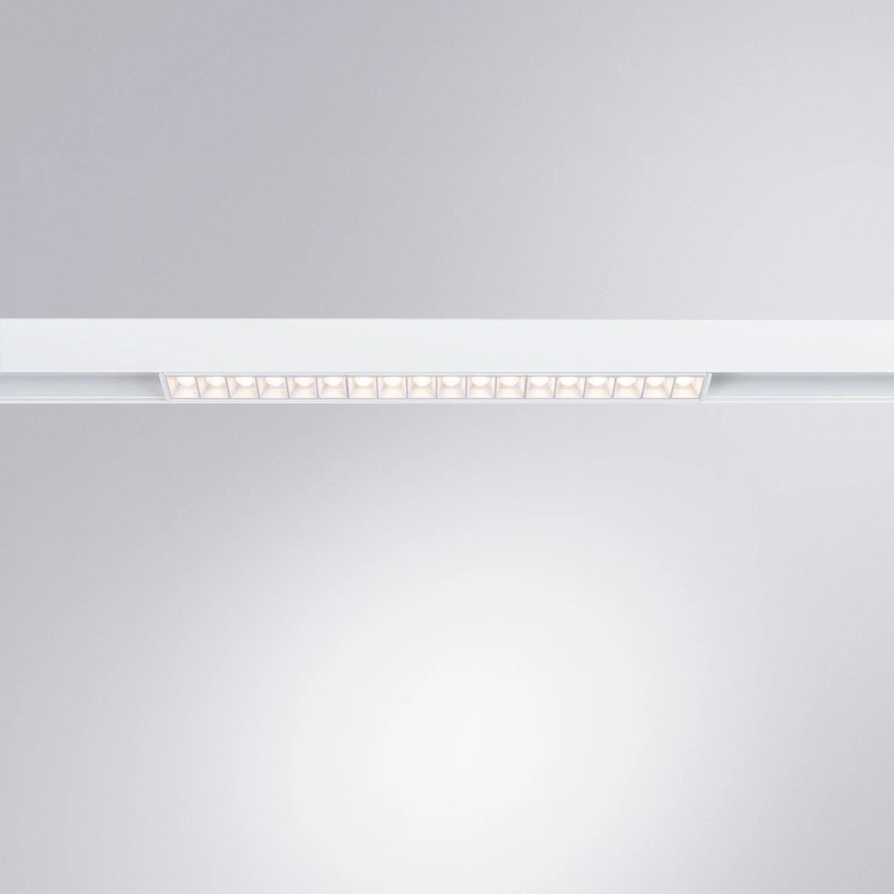 Магнитный трековый светильник A4675PL-1WH серии LINEA это нестандартный инструмент низковольтной трековой системы. Благодаря уникальной оптической системе светильник создаёт фантастический эффект с углом свечения 24°. Высокий зрительный комфорт и низкий коэффициент слепимости — ключевые особенности данной модели. Он незаметен в треке даже когда включён. Отлично подходит как для освещения гостиной, так и рабочей зоны.
