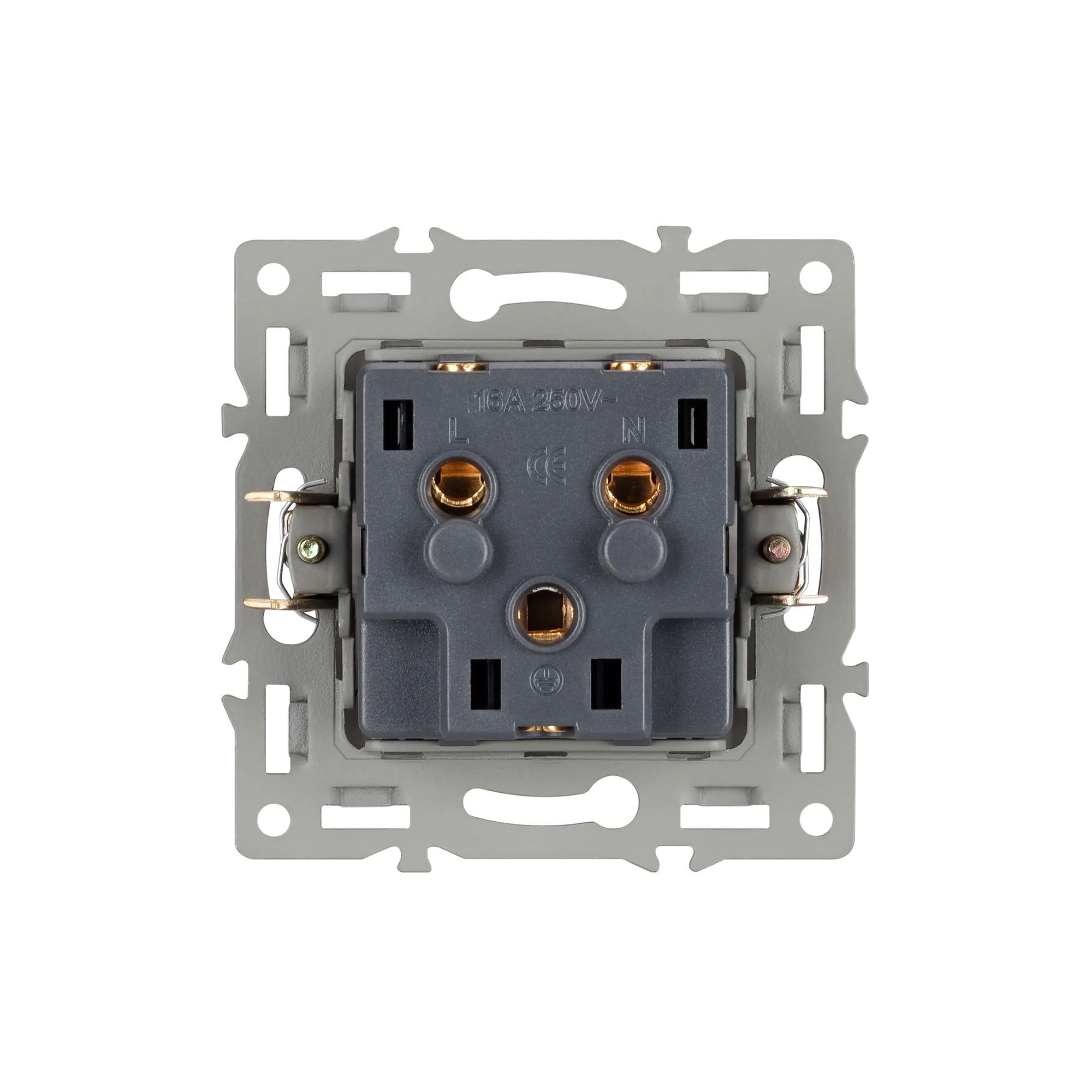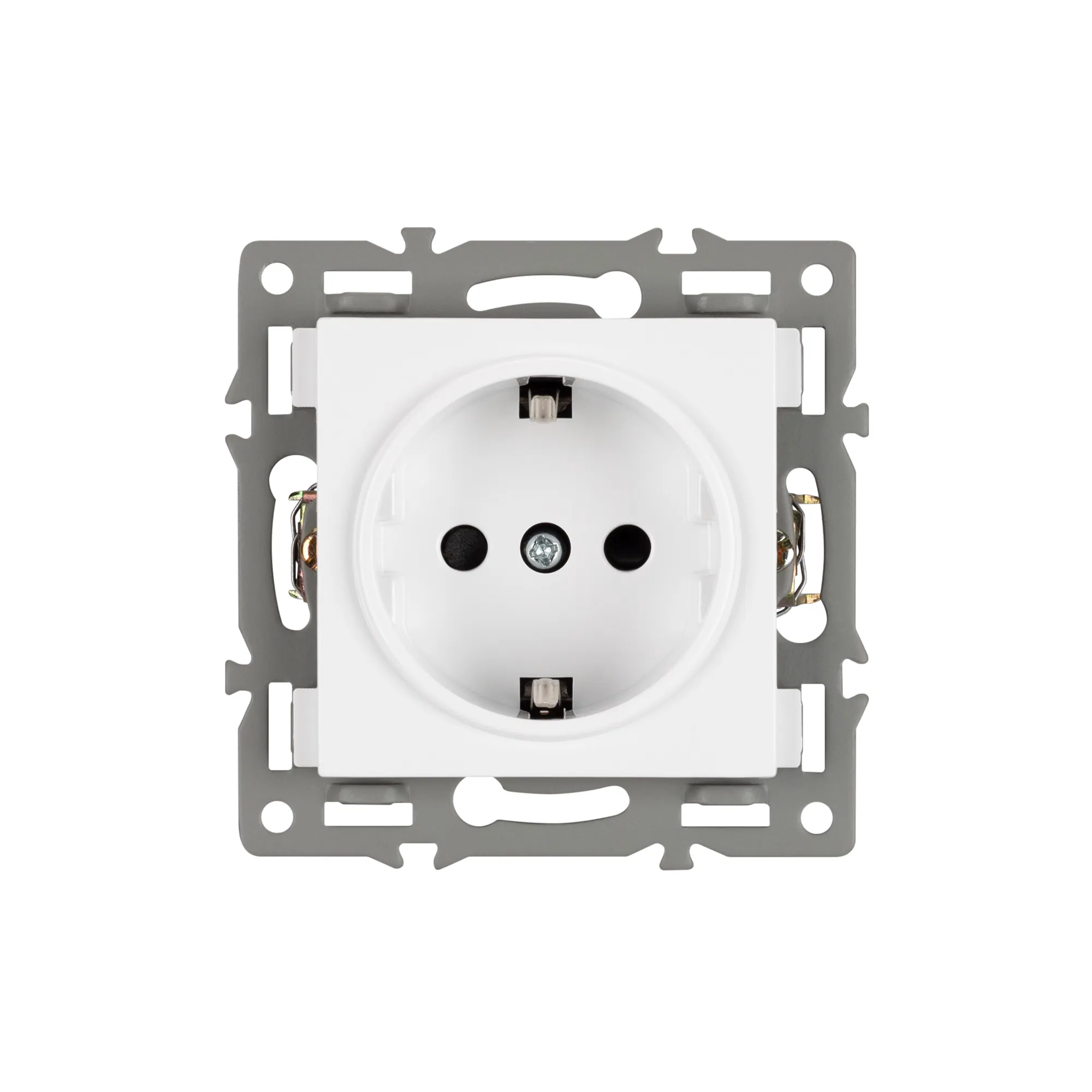 Механизм розетки с заземлением на 1 пост, совместим с рамками серий VERSA/GLARE/PRESTO. Накладной тип монтажа позволяет с легкостью произвести монтаж/замену. Видимая часть механизма выполнена из высококачественного тугоплавкого пластика белого цвета. Контактная часть присоединяется при помощи винтовых зажимов, а усиленные монтажные лапки надежно фиксируют механизм в установочном подрозетнике.