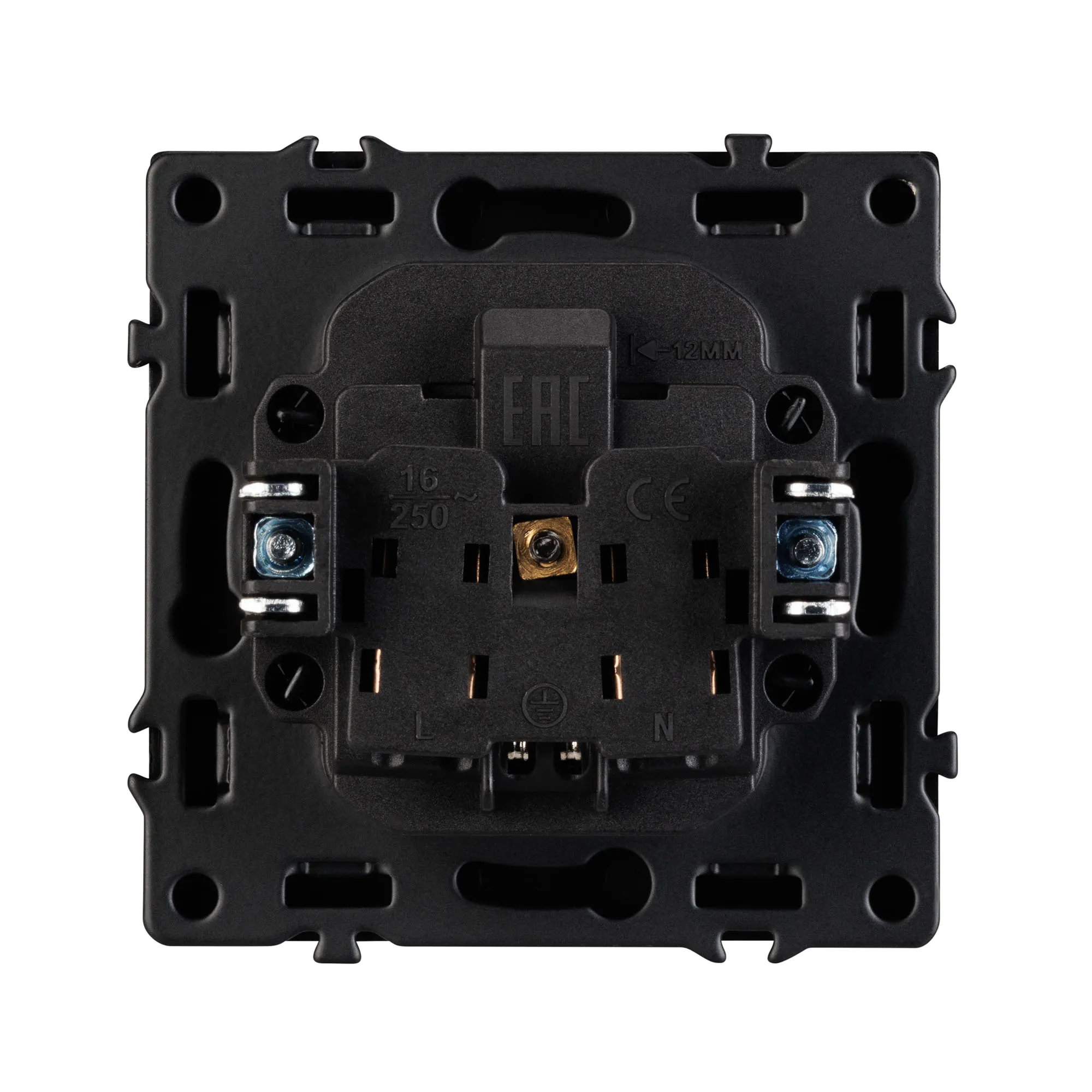 Розетка оснащена заземляющими контактами и защитными шторками, обеспечивая надежное и безопасное подключение электроприборов. Соединение посредством быстрозажимных контактов, позволяет надежно подсоединить механизм розетки к питающим элементам, минимизируя затраченное время на монтаж. А усиленные распорные лапки двойного захвата надежно фиксируют механизм в установочном подрозетнике круглого сечения диаметром 60мм.