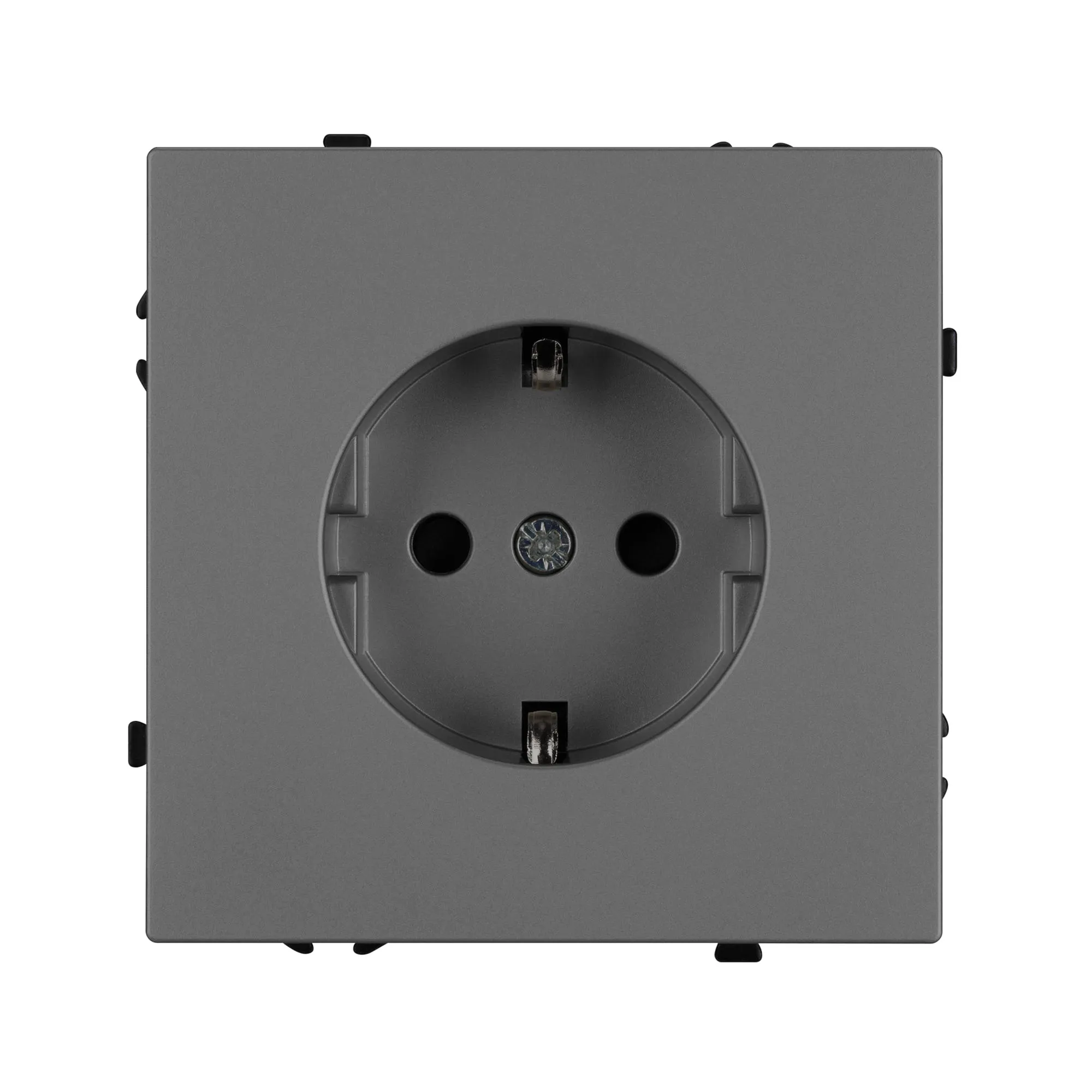 Механизм розетки с заземлением совместим с рамками серии NOBE, создает утонченный минималистичный вид. Скрытый тип монтажа позволяет гармонично встроить в интерьер любого современного дизайн-проекта. Видимая часть механизма выполнена из высококачественного пластика цвета серый базальт и имеет Soft-Touch покрытие, что придает изделию приятные тактильные ощущения и стильный внешний вид.