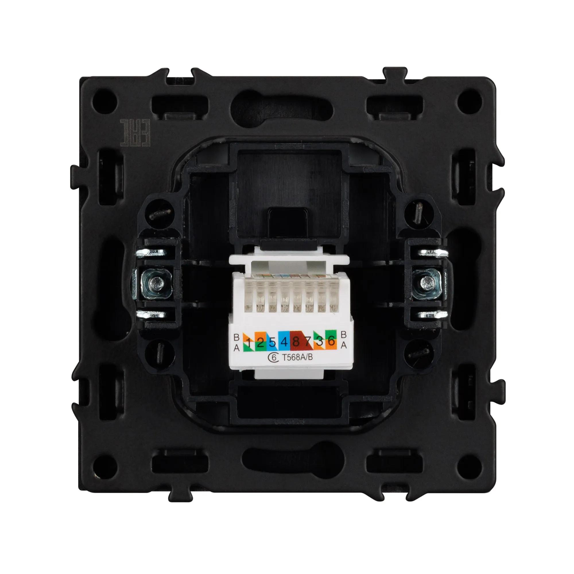 Выходной порт RJ-45 (Female) формата 8P8C соответствует категории 6 (Cat.6), что поддерживает высокоскоростные соединения до 10 Гбит/с на расстоянии до 55 метров. Самозакрывающаяся крышка защищает выходной порт от повреждения и загрязнения внешних контактов разъема. Контактная часть выполнена по технологии IPC (изоляционно–пробивающего контакта) с нанесением цветной маркировки схемы разводки на корпус, позволяя быстро и легко подсоединить механизм компьютерной розетки к большинству многожильных кабелей типа UTP (неэкранированные). А усиленные распорные лапки двойного захвата надежно фиксируют механизм в установочном подрозетнике круглого сечения диаметром 60мм.
