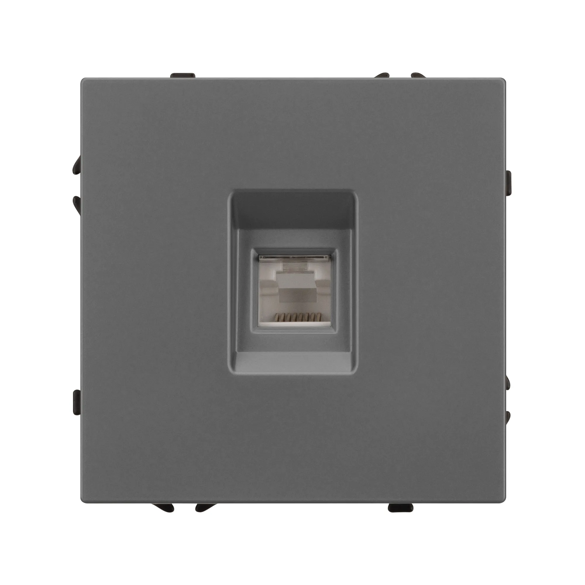 Механизм компьютерной розетки совместим с рамками серии NOBE, создает утонченный минималистичный вид. Скрытый тип монтажа позволяет гармонично встроить в интерьер любого современного дизайн-проекта. Видимая часть механизма выполнена из высококачественного пластика цвета серый базальт и имеет Soft-Touch покрытие, что придает изделию приятные тактильные ощущения и стильный внешний вид.