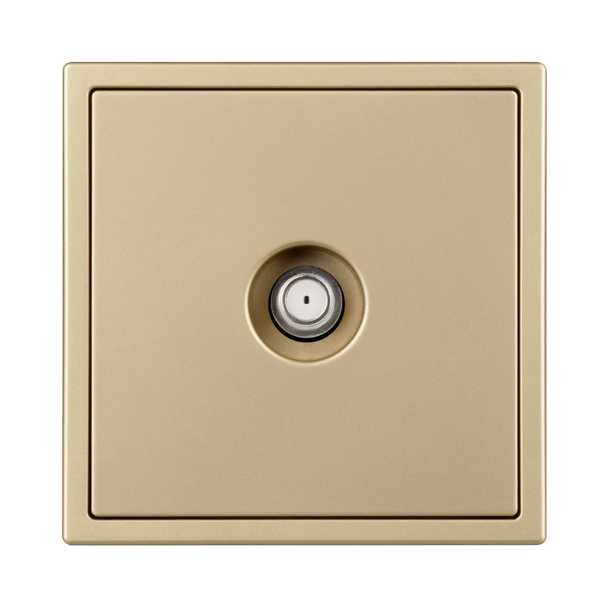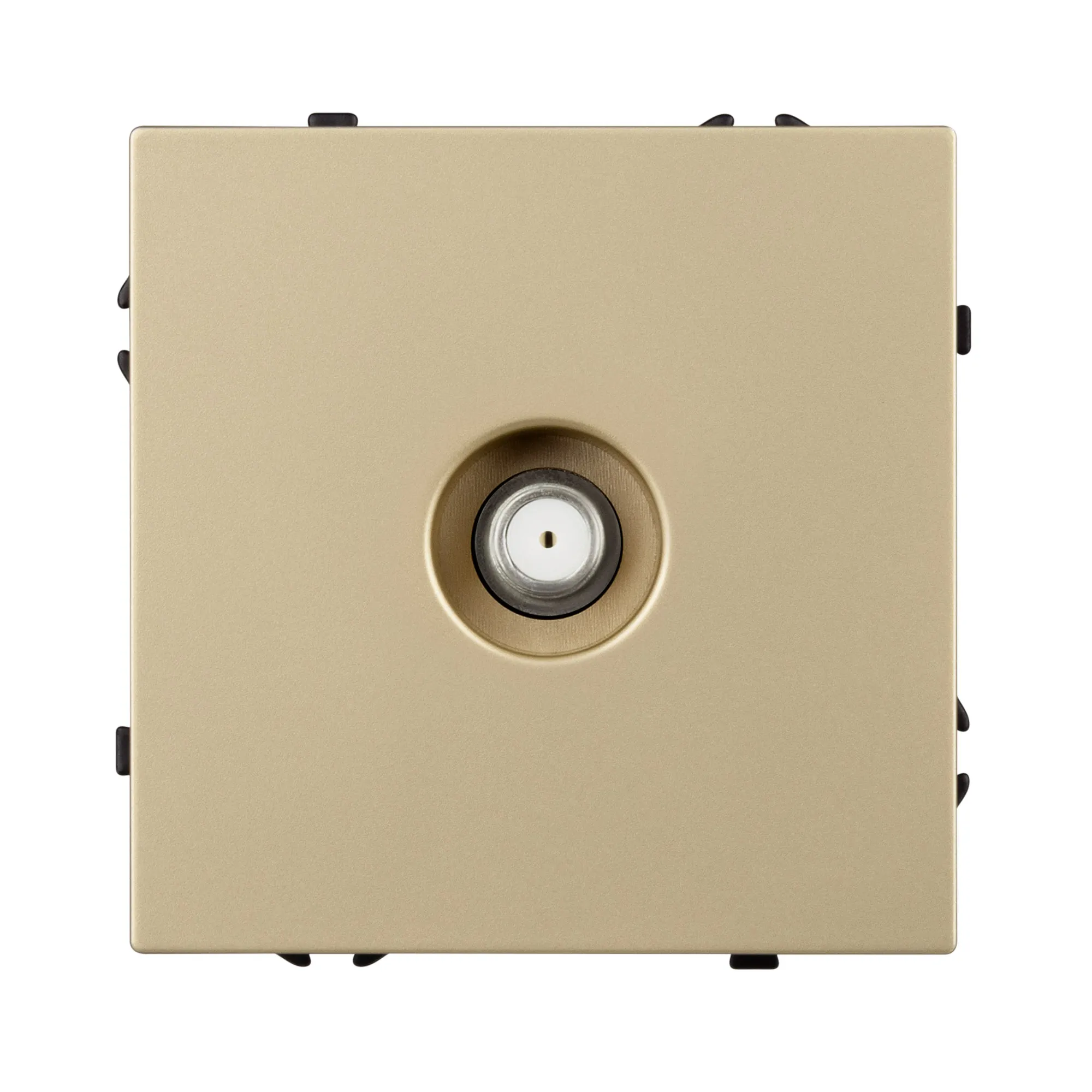 Механизм спутниковой розетки совместим с рамками серии NOBE, создает утонченный минималистичный вид. Скрытый тип монтажа позволяет гармонично встроить в интерьер любого современного дизайн-проекта. Видимая часть выполнена из высококачественного пластика цвета золотой песок и имеет Soft-Touch покрытие, что придает изделию приятные тактильные ощущения и стильный внешний вид.