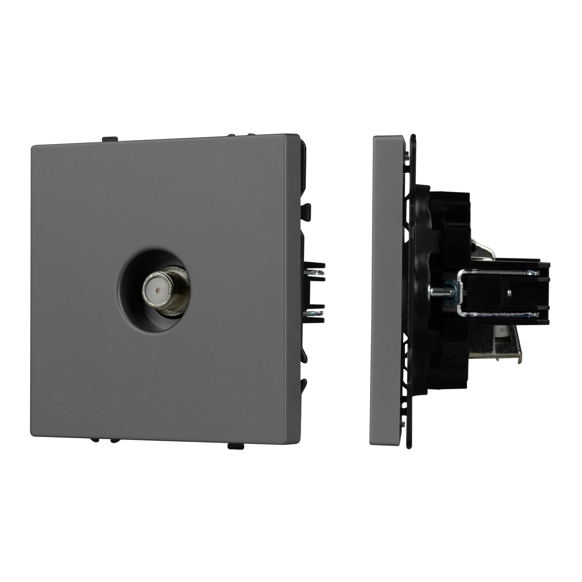 Механизм спутниковой розетки совместим с рамками серии NOBE, создает утонченный минималистичный вид. Скрытый тип монтажа позволяет гармонично встроить в интерьер любого современного дизайн-проекта. Видимая часть выполнена из высококачественного пластика цвета серый базальт и имеет Soft-Touch покрытие, что придает изделию приятные тактильные ощущения и стильный внешний вид.
